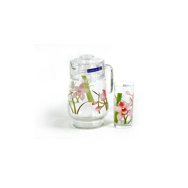 Luminarc Red Orchis Набор/вода-7пр/ 6 стаканов 270мм + 1 кувшин с крышкой 1,3л.