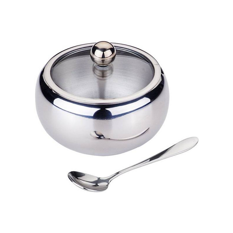 сахарница с ложкойвысококачественная сталь 18/10/ стекло, 460 мл
