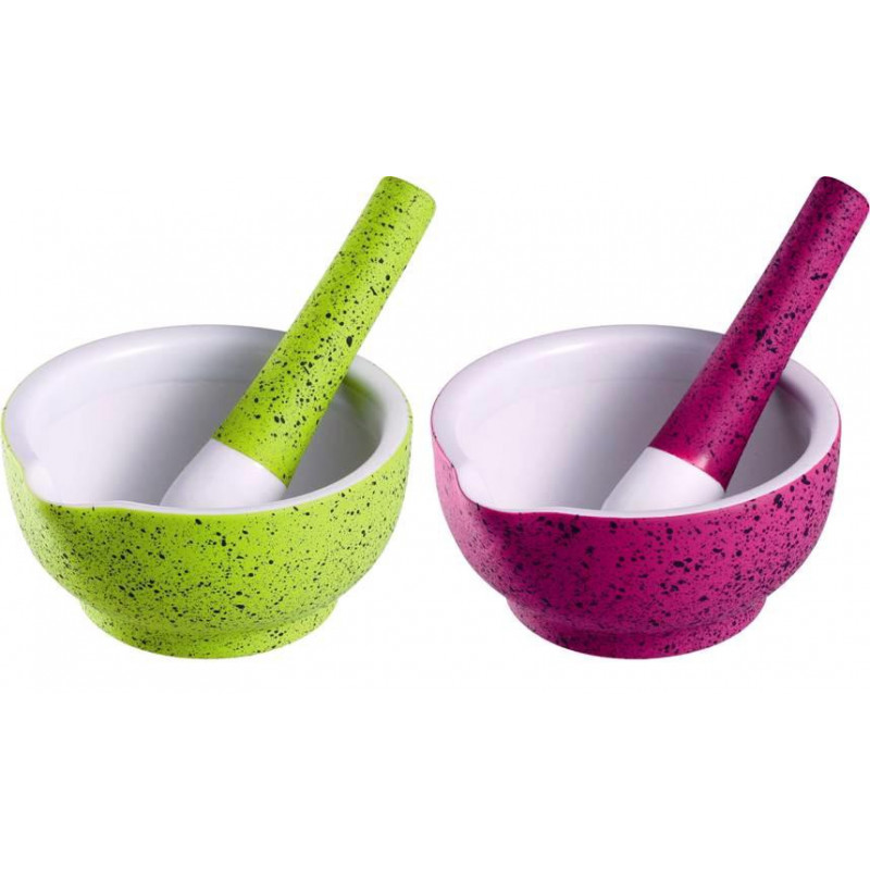 Ступа из упрочненного фарфора, d 15 см, пестик 15 см, цвета: зеленый, фиолетовый