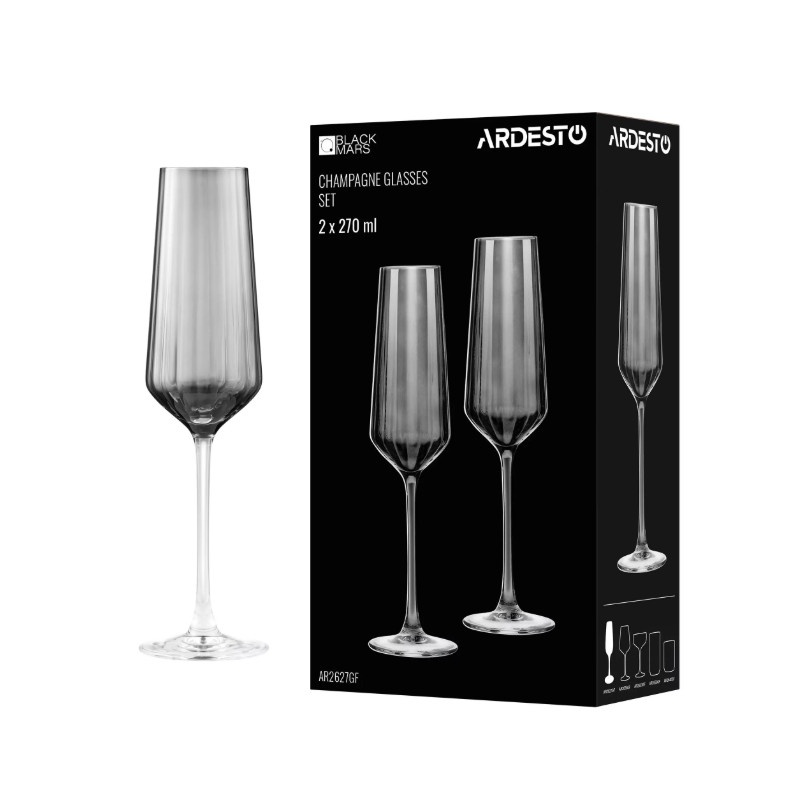 Набір келихів для шампанського 270мл/2шт Ardesto Black Mars Alcor AR2627GF