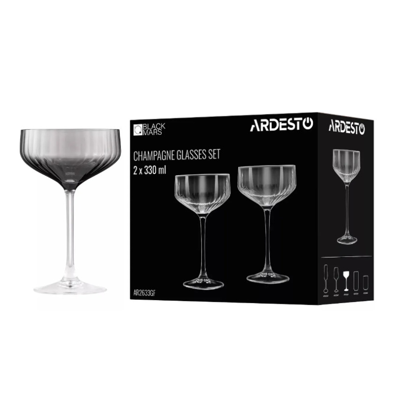 Набір келихів для шампанського 330мл/2шт Ardesto Black Mars Alcor AR2633GF