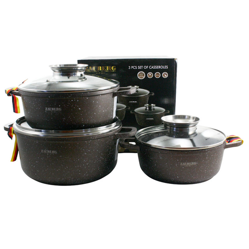 Набір з 3-х каструль 2,3/3,2/4,5 л Zauberg Мармур шоколад 3020/22/24 CH