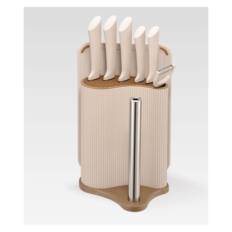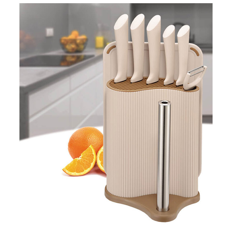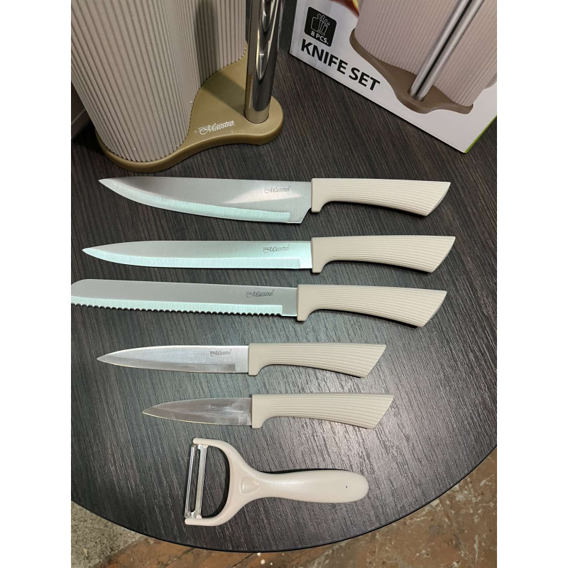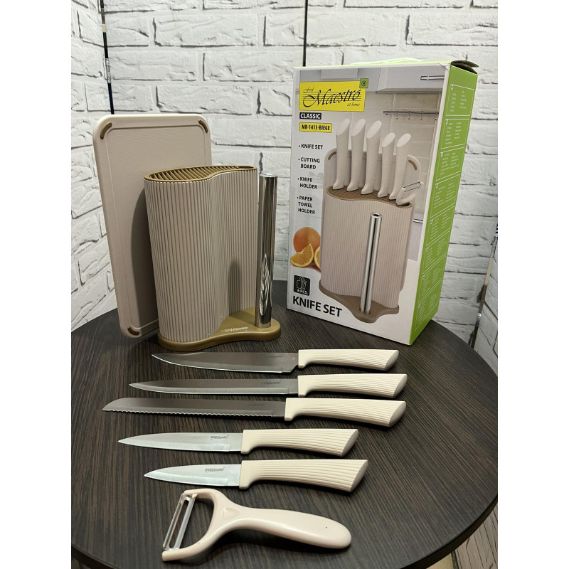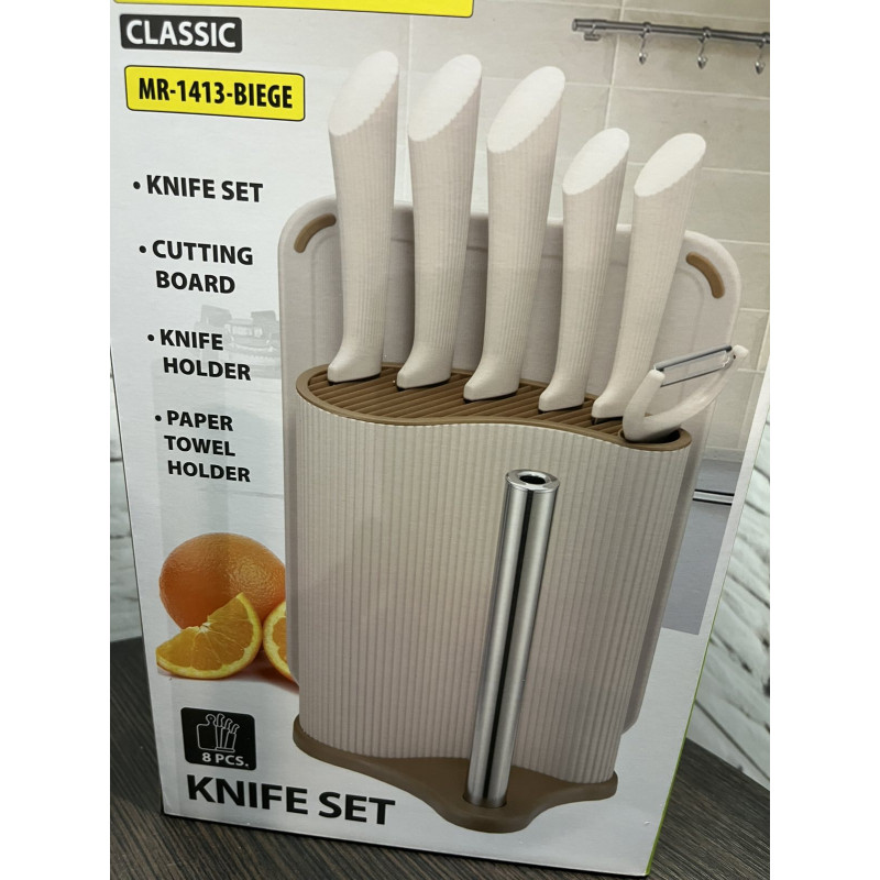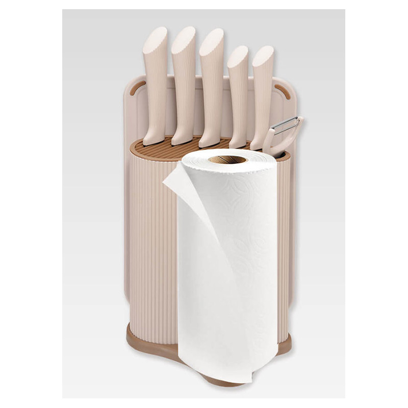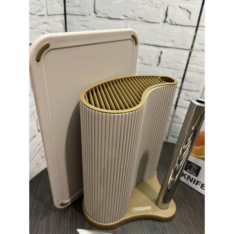 Набір ножів 8 предметів у підставці з тримачем для паперових рушників + дошка Maestro MR-1413-BEIGE