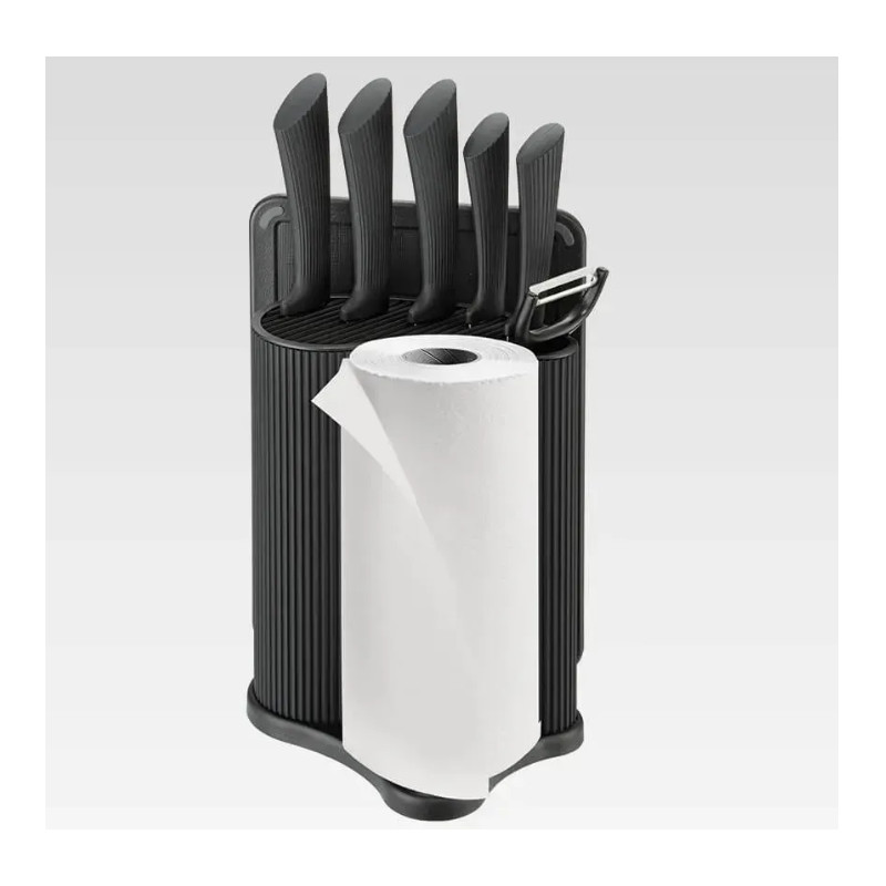 Набір ножів 8 предметів у підставці з тримачем для паперових рушників + дошка Maestro MR-1413-BLACK