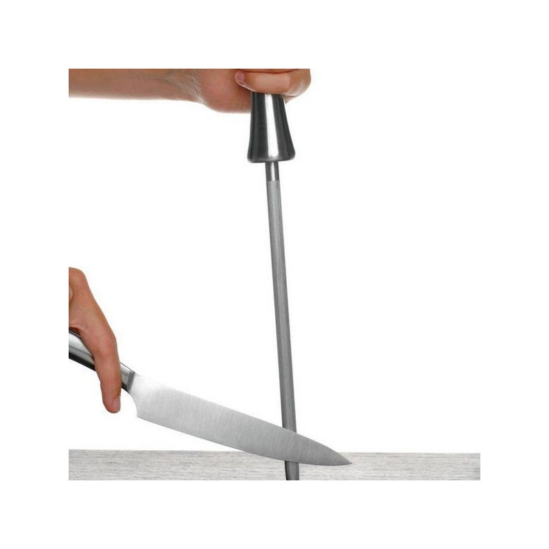 В набор входит специальное точильное приспособление, известное как мусат. Набор изготовлен из высококачественной стали, с полированной поверхностью, которая обладает защитными свойствами, гигиенична, ее легко чистить. Такая сталь достаточно устойчива к коррозии, поэтому набор будет служить долгое время. У ножей удобные стальные рукоятки эргономичной формы, которые отлично сбалансированы, обеспечивая безопасный и надежный захват.