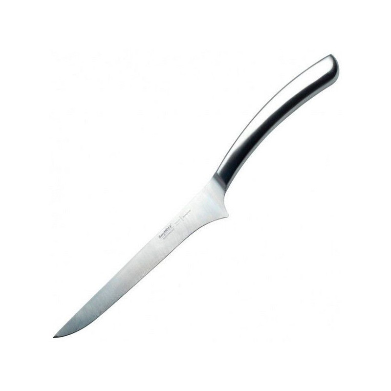 Этот красивый серебристый набор от всемирно известного бренда Berghoff из линейки Concavo станет для вас прекрасным помощником на кухне. Состоит из мусата, колоды и 6 ножей - для хлеба (со специальным зазубренным лезвием), а также обвалочный, поварской, универсальные.