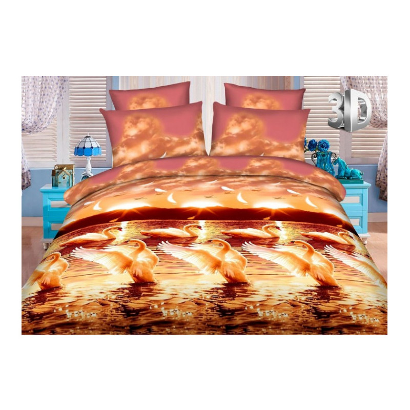 Постельное белье двуспальное RestLine 3D 211 Лебедь