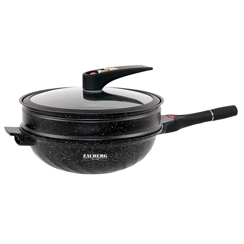 Сковорода 3 в 1 (ВОК, сотейник,пароварка) 4,5л Zauberg Мрамор чорна 1332 BL