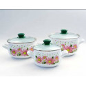 Многообразие расцветок покрытия и различные варианты декоративных рисунков позволяют выбрать под свой интерьер набор эмалированной посуды с изображением цветов, фруктов, овощей или в милый горох. Очень стильно смотрятся посуда interos в темных цветовых решениях: черный, красный, шотландка и другие.