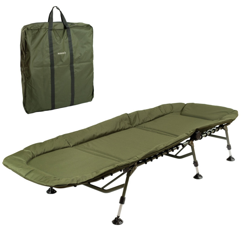 Ranger Ground Contact Lux — це потужна та комфортна коропова розкладачка на 6 ніжках, створена для риболовлі, кемпінгу та відпочинку на природі.